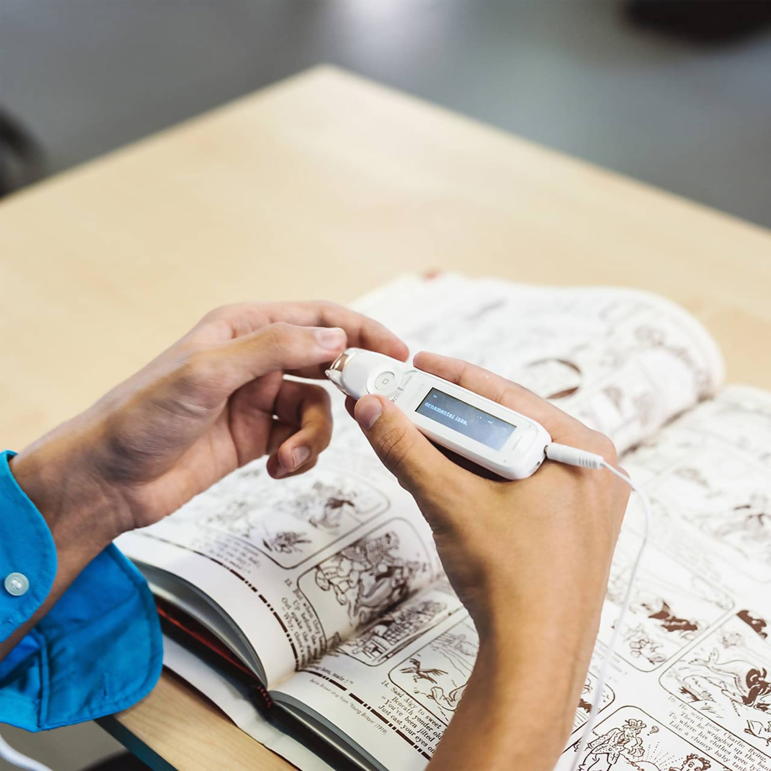 The device is particularly useful for individuals with dyslexia, reading difficulties or lower confidence with printed text, as it supports multi-sensory learning by combining visual and audio feedback. Everything is built into the device, so there is no need for Wi-Fi, smartphones or computers.