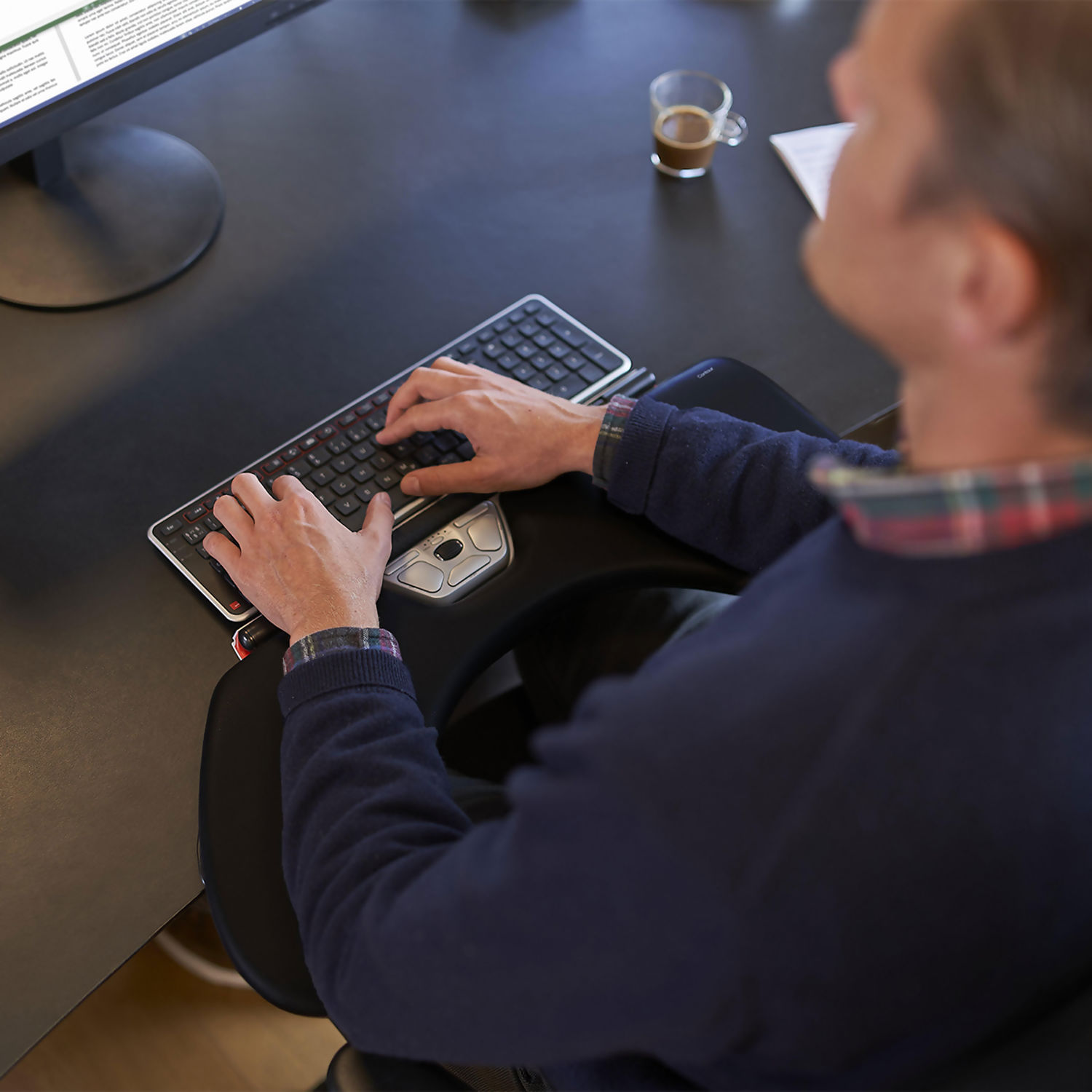 Max – With Max, the wrist rest is an integrated arm support relieving strain on your shoulders and neck.