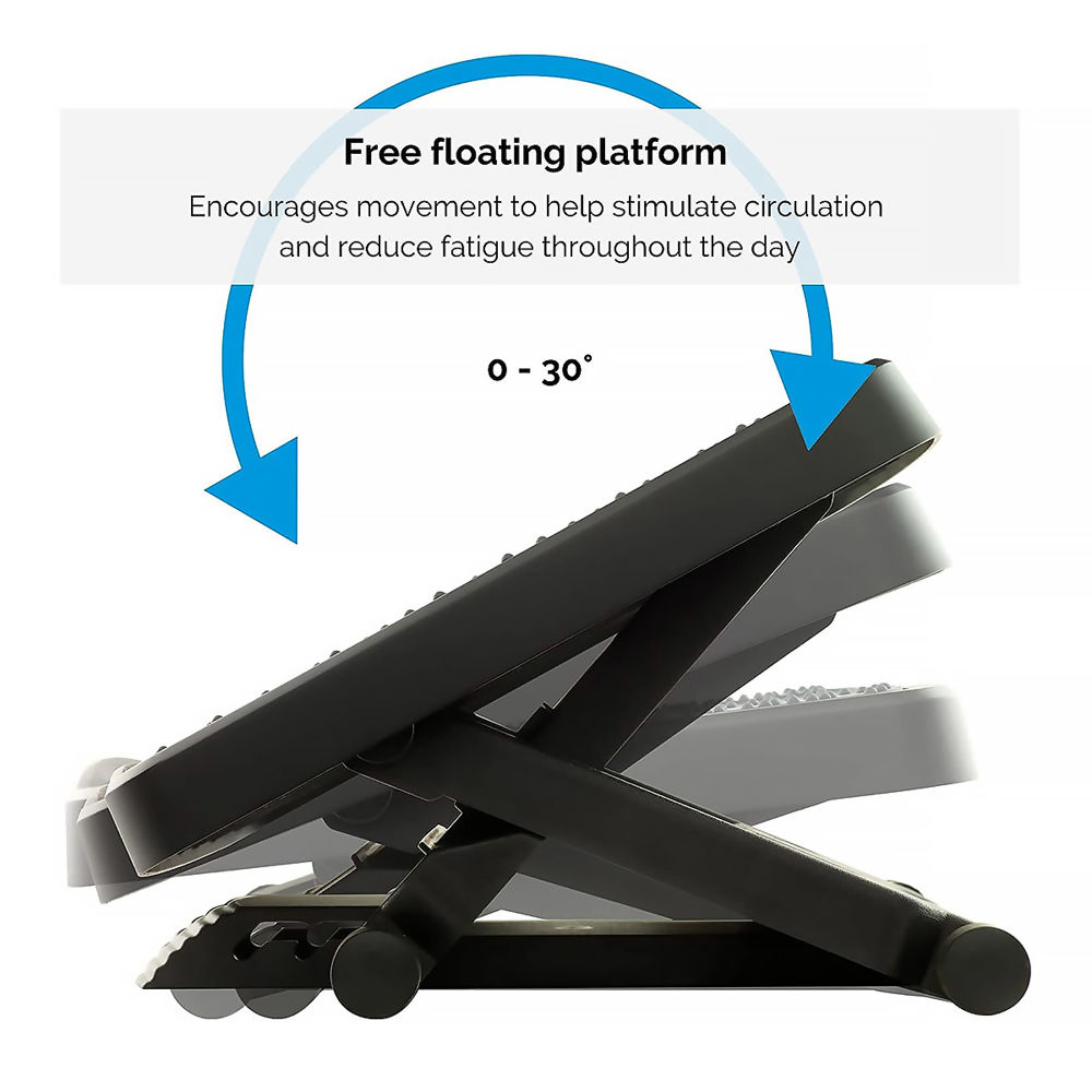 We are increasingly spending more time sat working at an office desk and this sedentary behaviour presents numerous health risks, including back pain. Having a place to position your feet supports your upper-body posture which reduces the pressure on your back. If the footrest allows movement, this helps to keep you moving throughout the day, which protects against the effects of monotonous sitting, such as fatigue and strain.