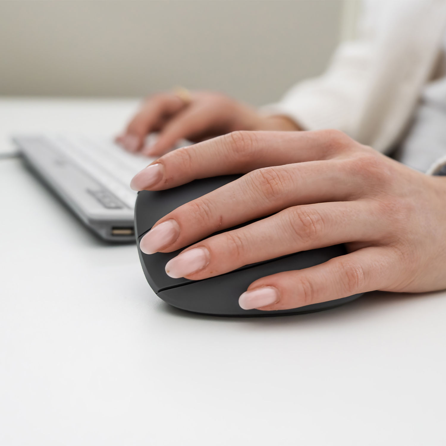 MidWay Mouse is designed for users seeking a simple step toward better ergonomics without fully switching to a vertical mouse. Its slightly tilted, semi-vertical shape positions the hand and forearm in a more relaxed, natural posture, helping to reduce muscle tension and strain in the wrist, forearm and shoulder during extended computer work.