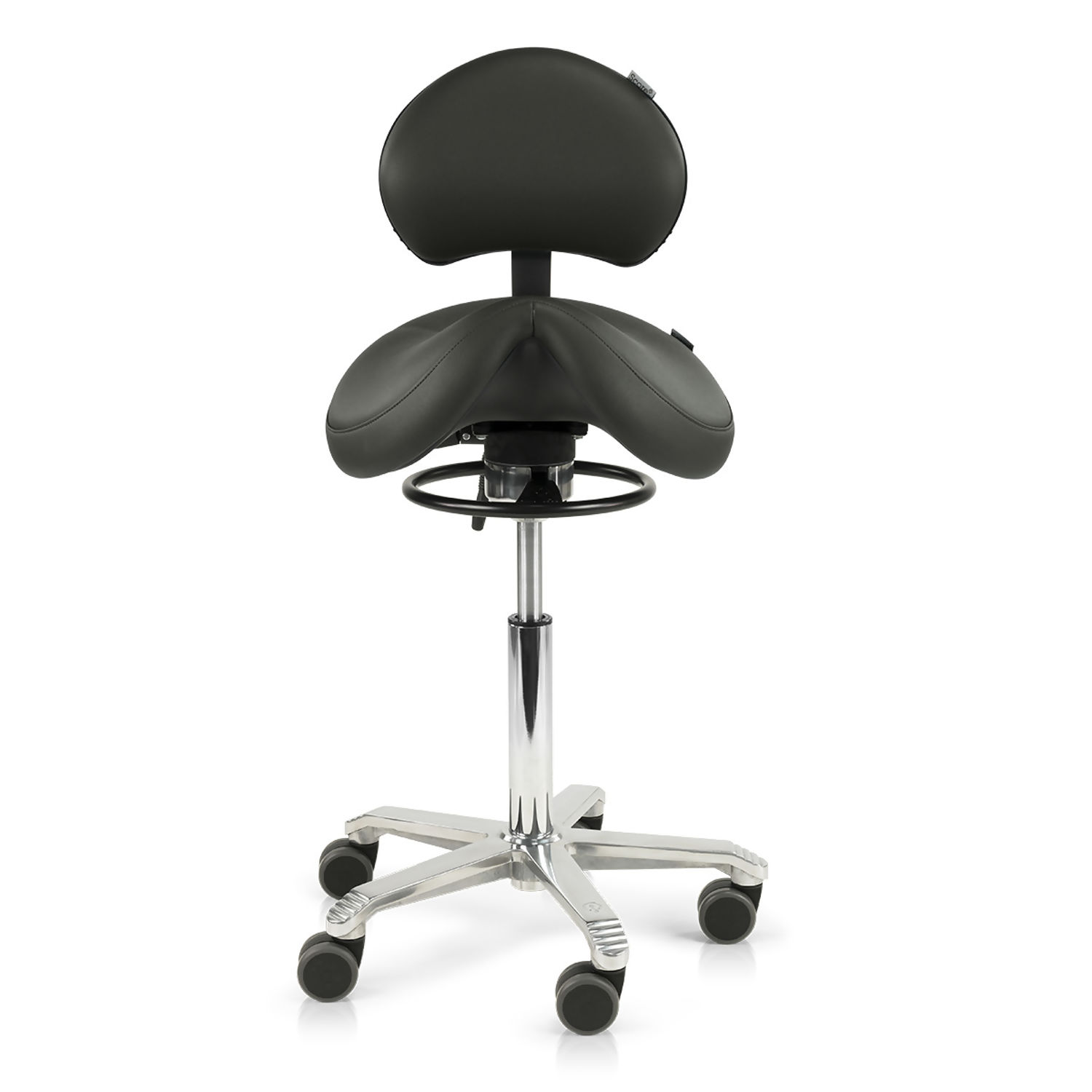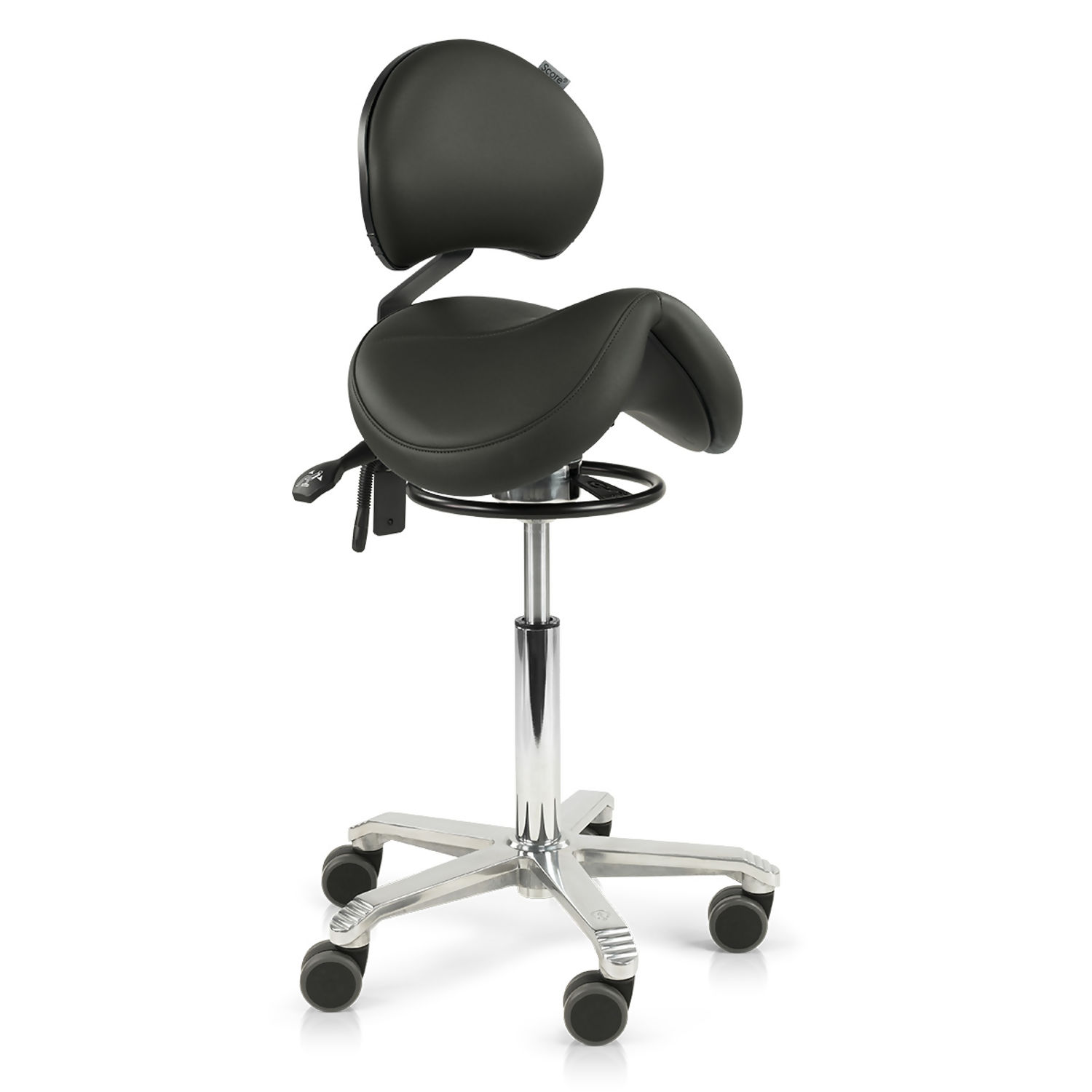 Score Jumper saddle stool improves your posture by placing you into a near standing position. Your hips are opened to an optimal 135° angle which tilts your pelvis forwards, points your thighs downwards and allows your back to assume its natural ‘s-curve'. This neutral position is easy to maintain and ensures you are protected from strain and musculoskeletal injuries.